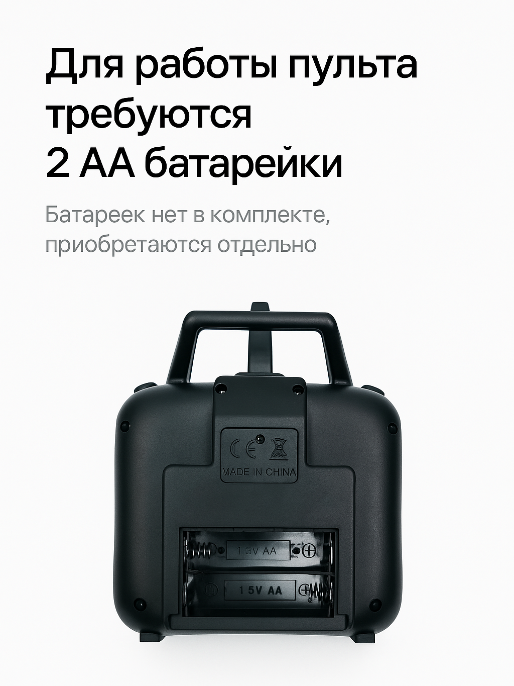 - Питание пульта: 2 батарейки АА (в комплект не входят)