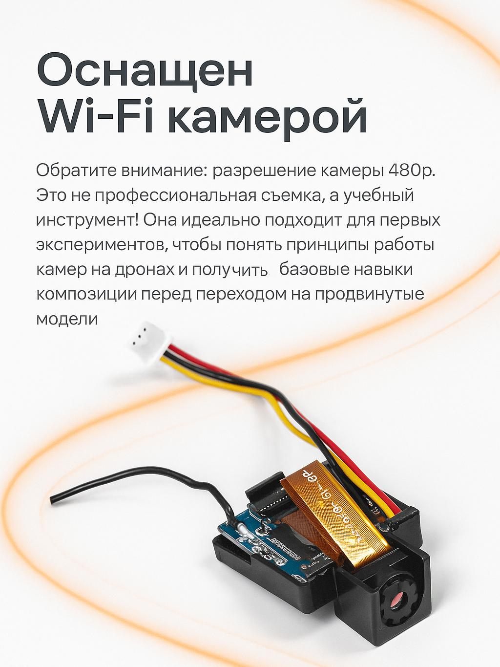 ⚠️ Важное примечание по камере: Разрешение камеры 480p. Это не профессиональная съемка, а учебный инструмент! Она идеально подходит для первых экспериментов, чтобы понять принципы работы камер на дронах и получить базовые навыки композиции перед переходом на продвинутые модели.