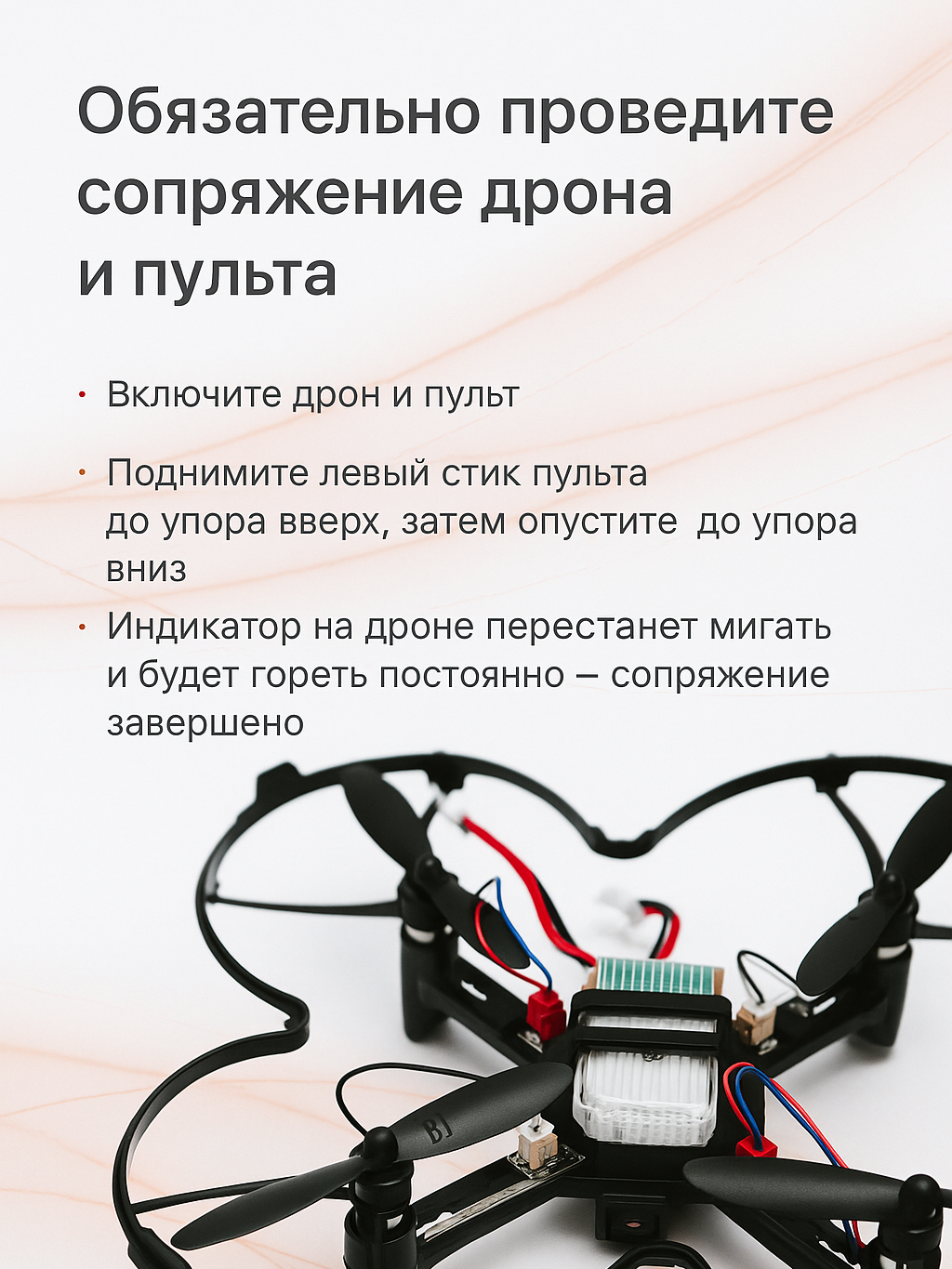 - Сопряжение пульта с дроном (ОБЯЗАТЕЛЬНЫЙ шаг!):