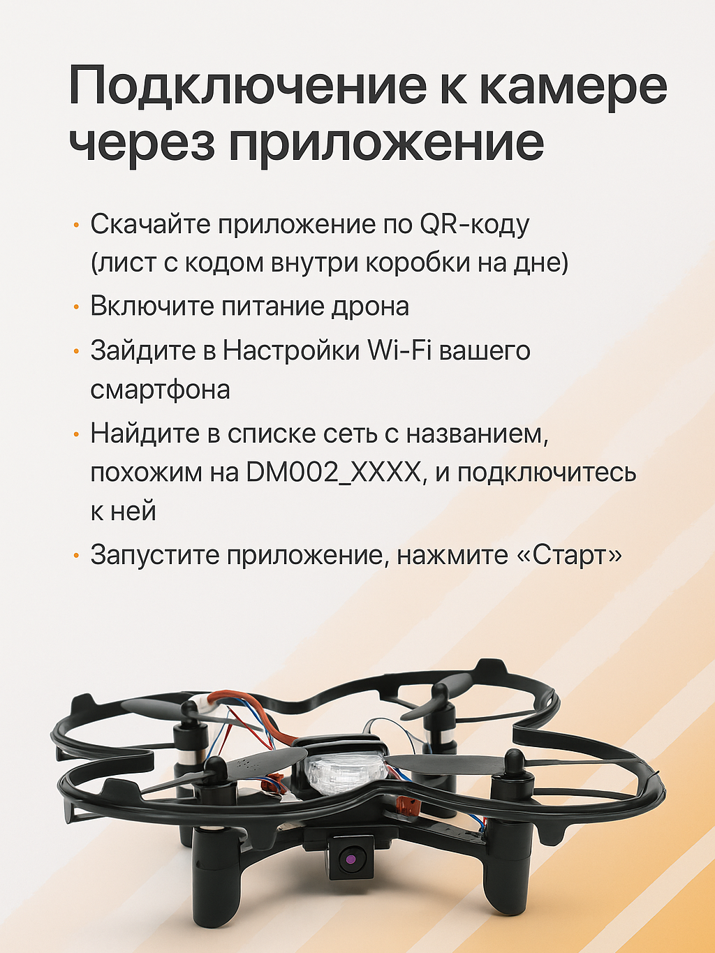 - Дрон оснащен Wi-Fi камерой